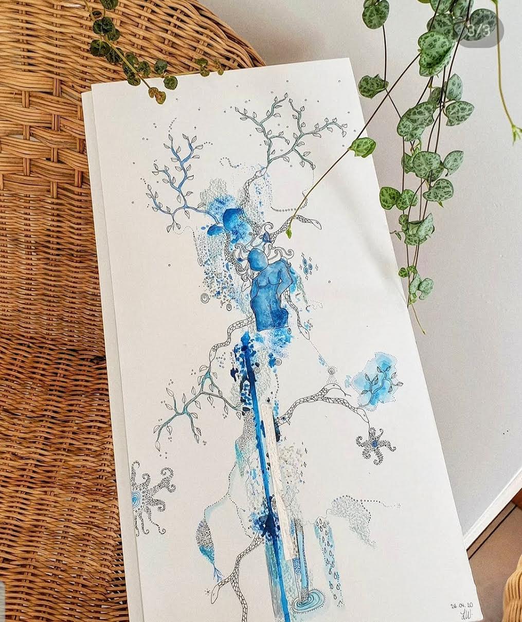 Lors du confinement de printemps 2020 dû au Coronavirus, je me suis mise à peindre plus que d’habitude, ce qui m’a permis de trouver mon style et de m’épanouir dans une nouvelle manière de peindre.